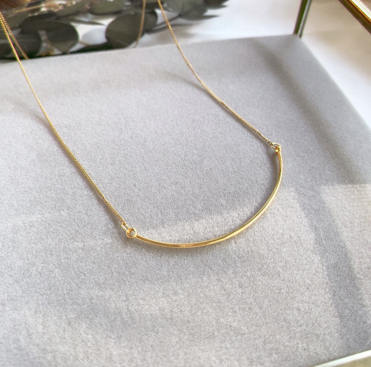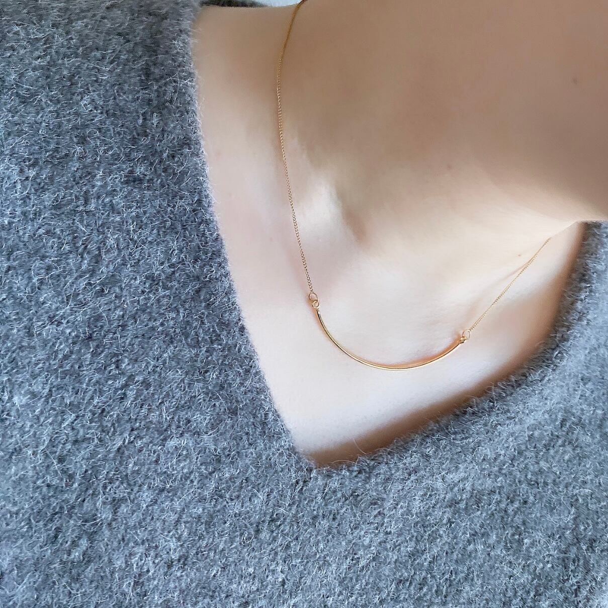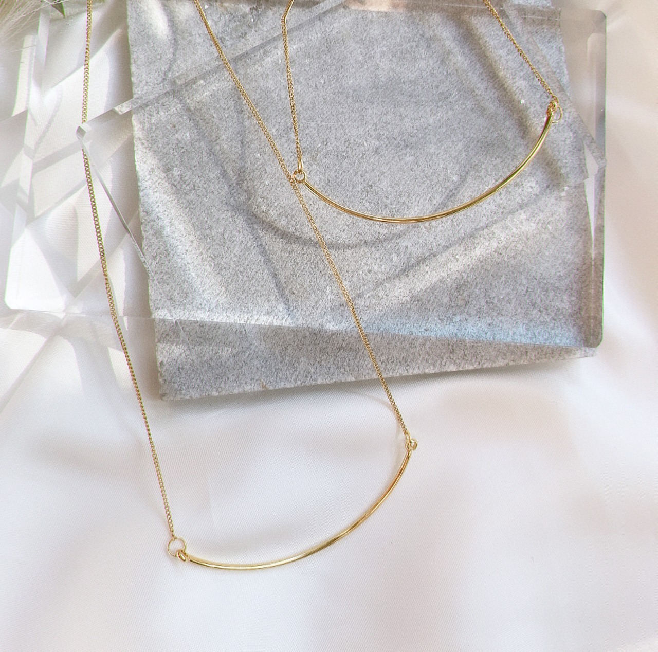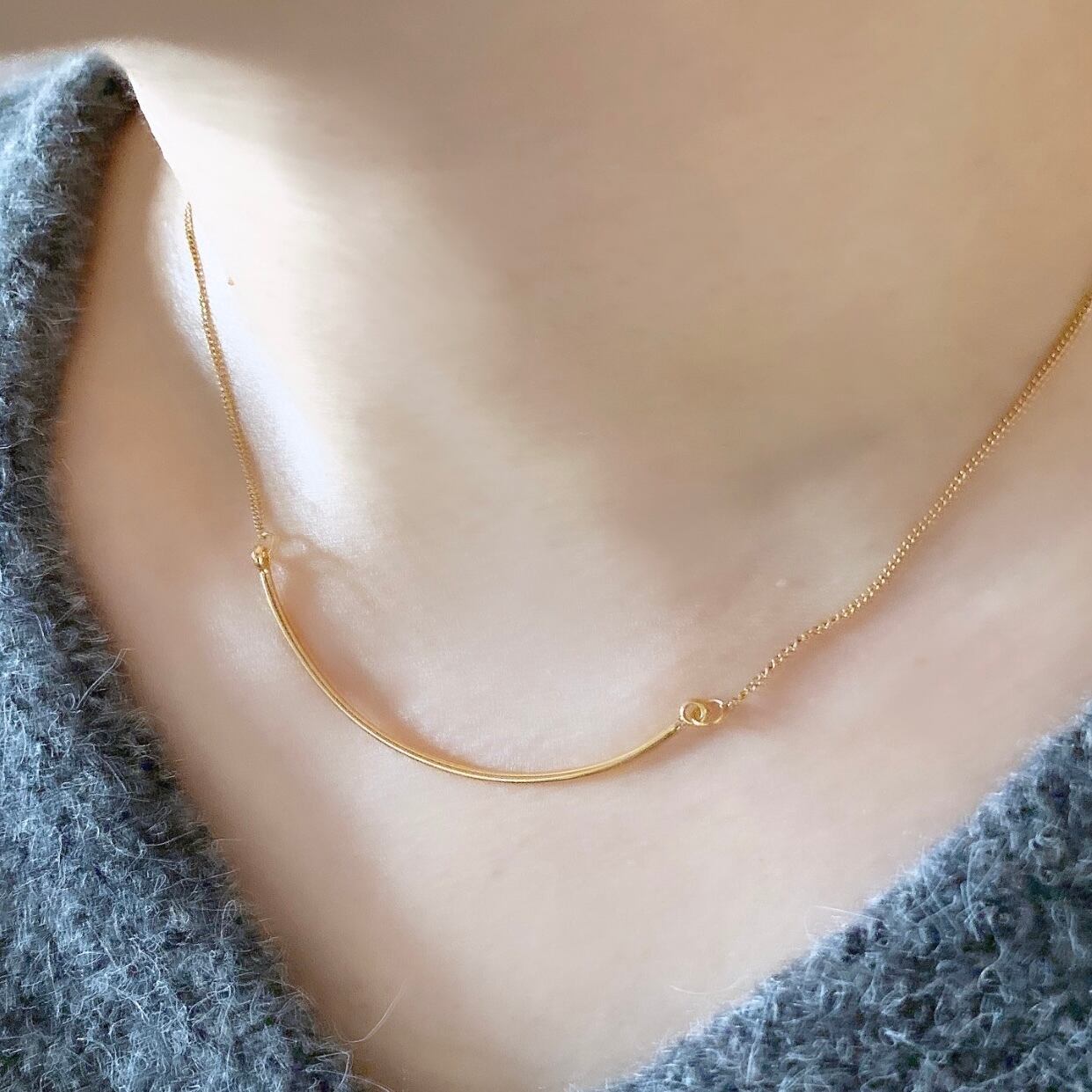 華奢なチェーンと細身のゴールドパーツを合わせたネックレスです。