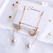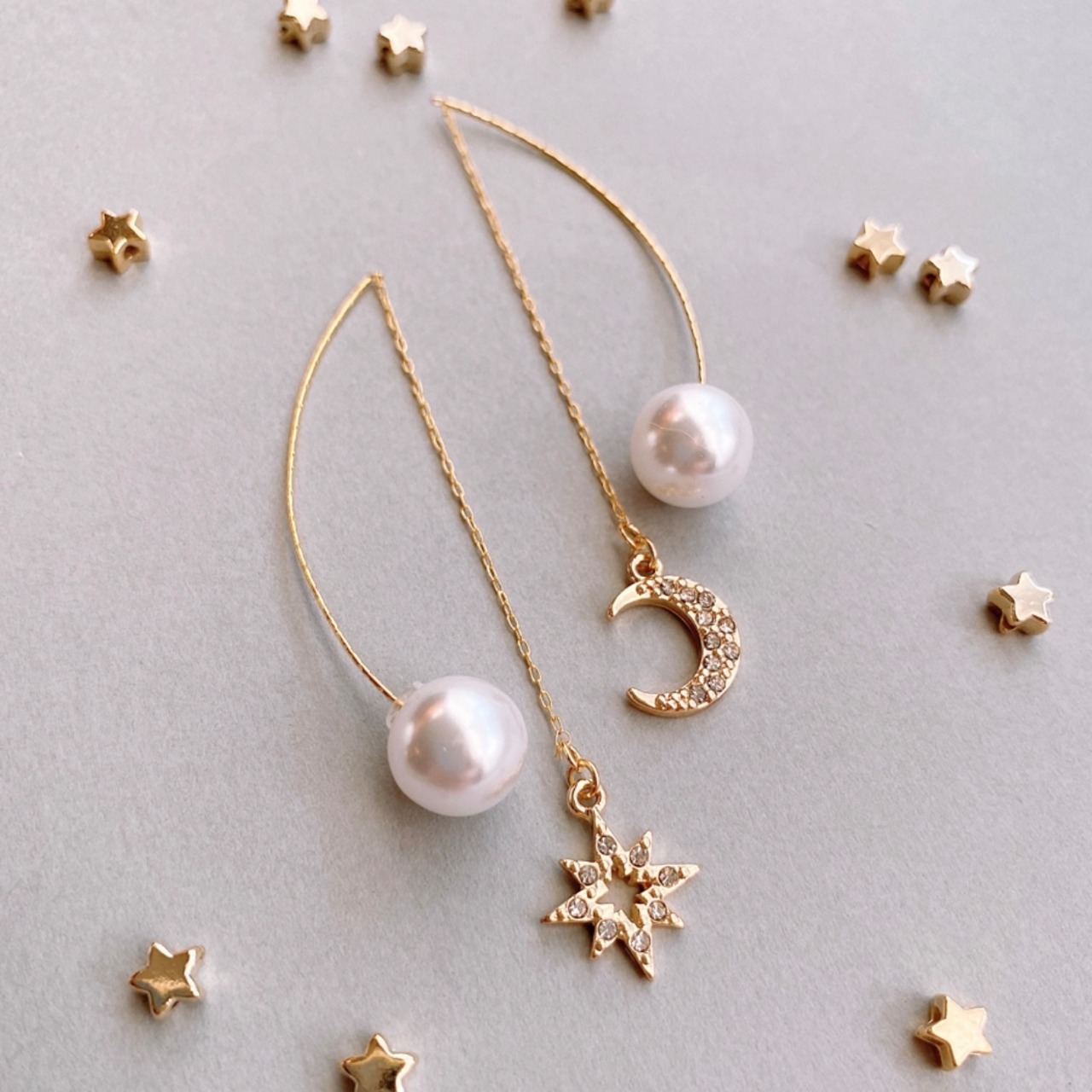 繊細なチェーンから揺れるのは、キラキラな月と星のモチーフ。