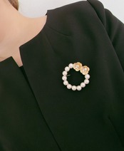 お花は優しく輝くマットゴールドなので、ツヤのあるパールとのコントラストが美しいブローチです。