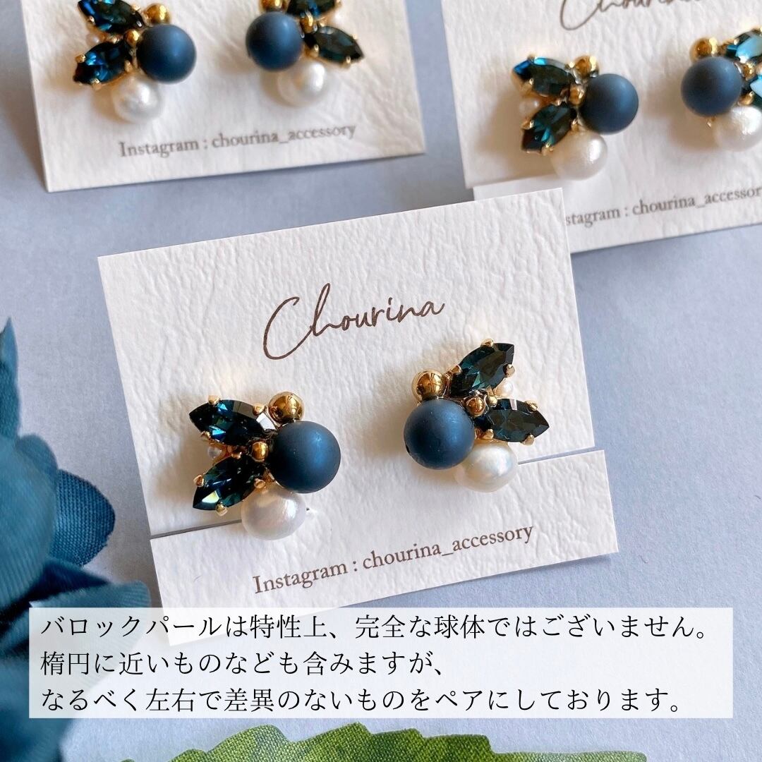ネイビー/紺/結婚式/お呼ばれ/天然石/14kgf/マーブル/淡水パール/パール/ゴールド/プレゼント/誕生日プレゼント/誕生日石/まる/花/チェコビーズ/アースカラー/モノトーン/差し色/高見えコーデ/バロックパール/シック