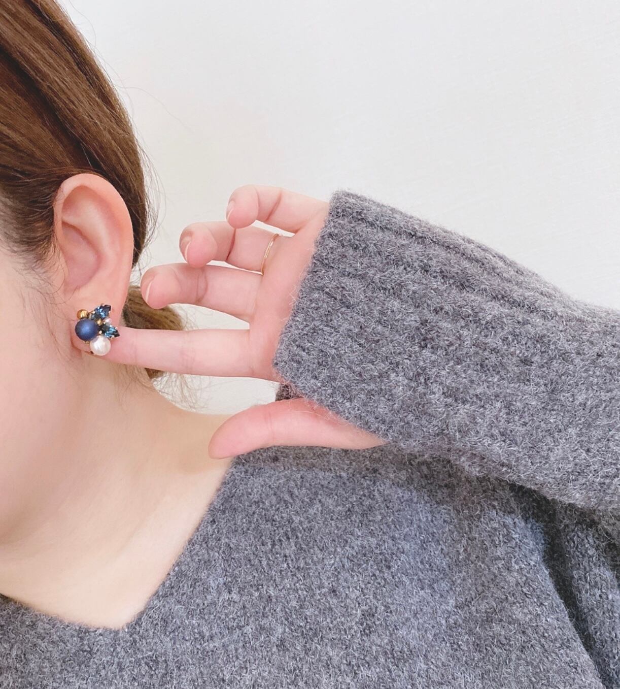 季節や身につける方の年齢を問わないネイビーカラーの耳飾りです。