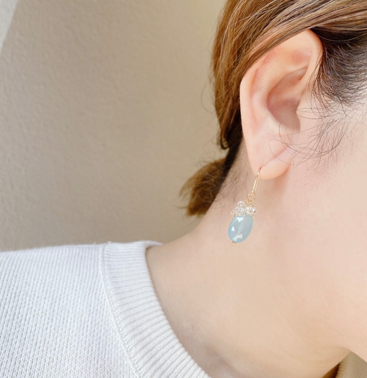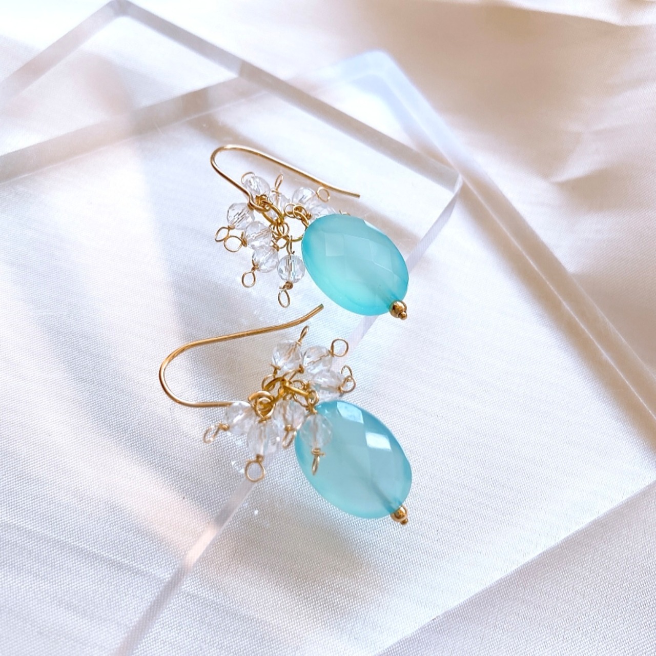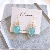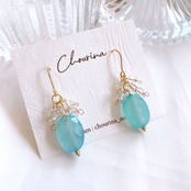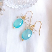 鮮やかなパステルブルーが美しいシーブルーカルセドニーを主役にしたピアス/イヤリングです。
