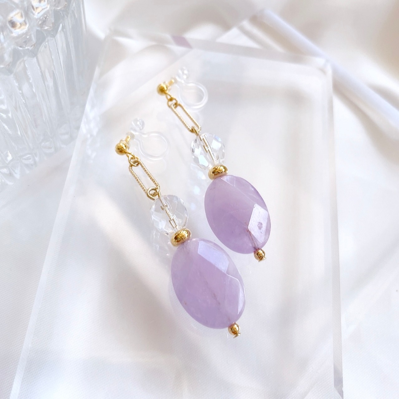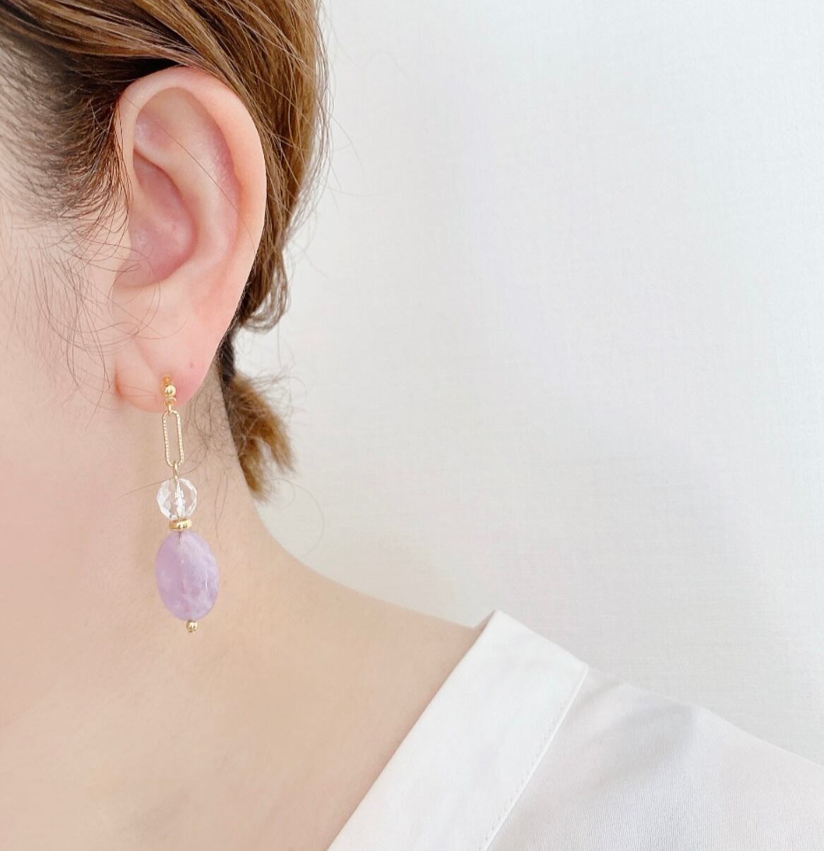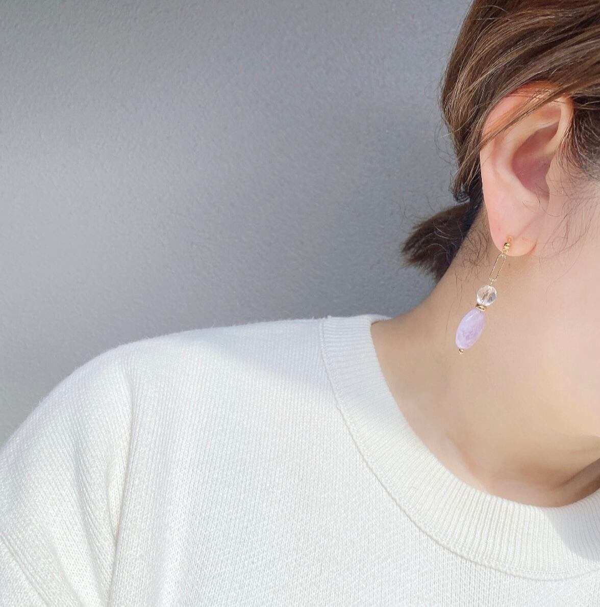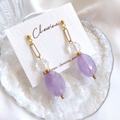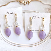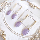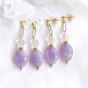 春らしいラベンダーアメジストとガラスビーズを合わせた耳飾りです。