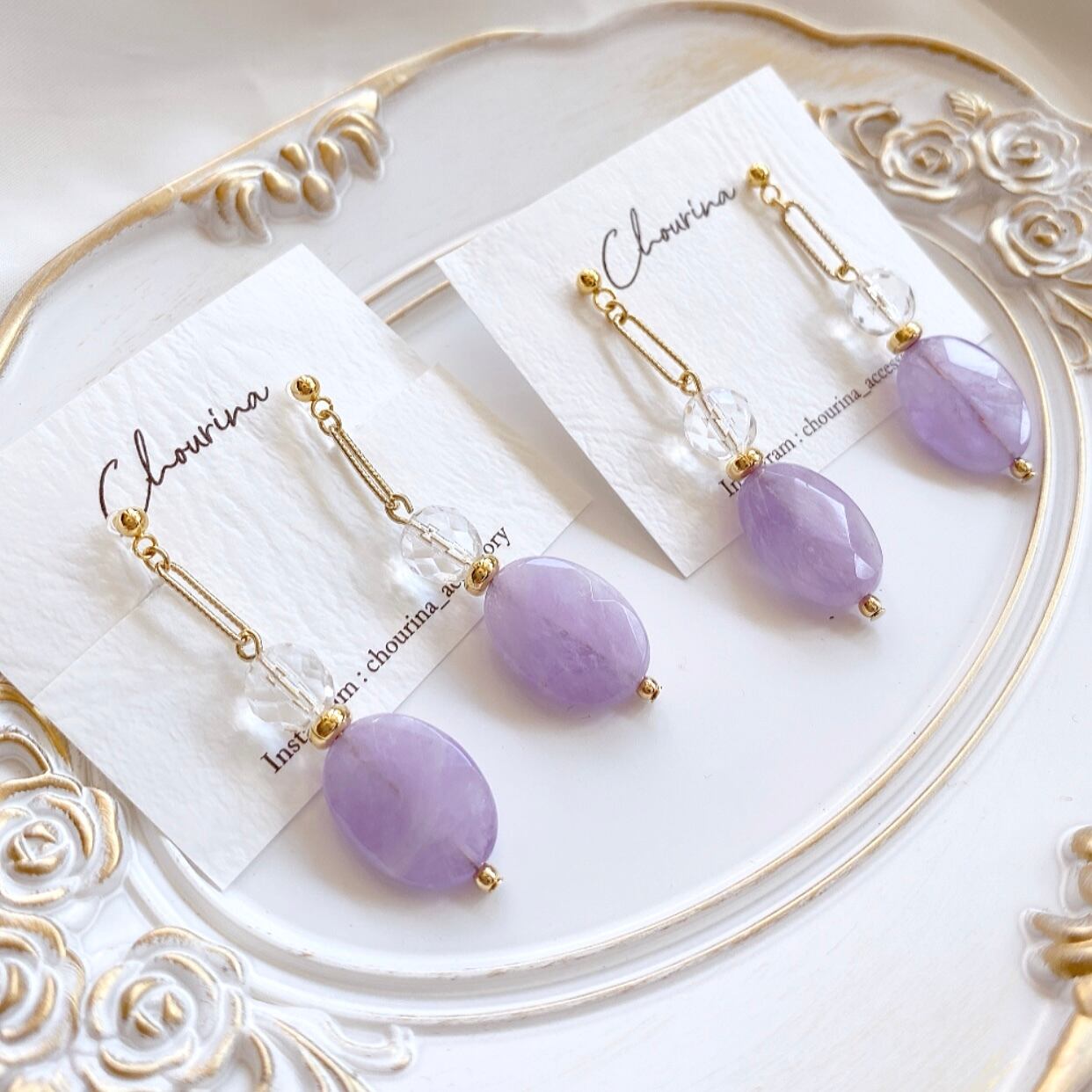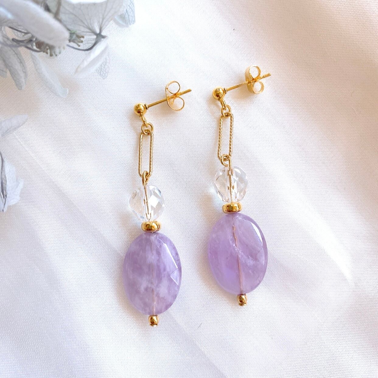 淡いラベンダーアメジストはパステル調の優しいカラー。