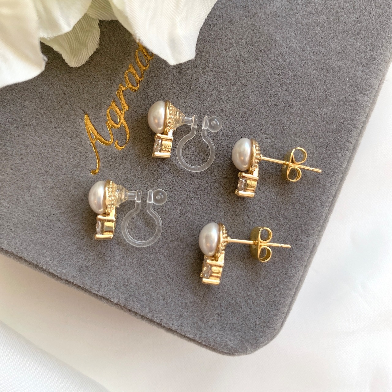 耳飾りはイヤリング(ノンホールピアス)orピアスからお選び頂けます。