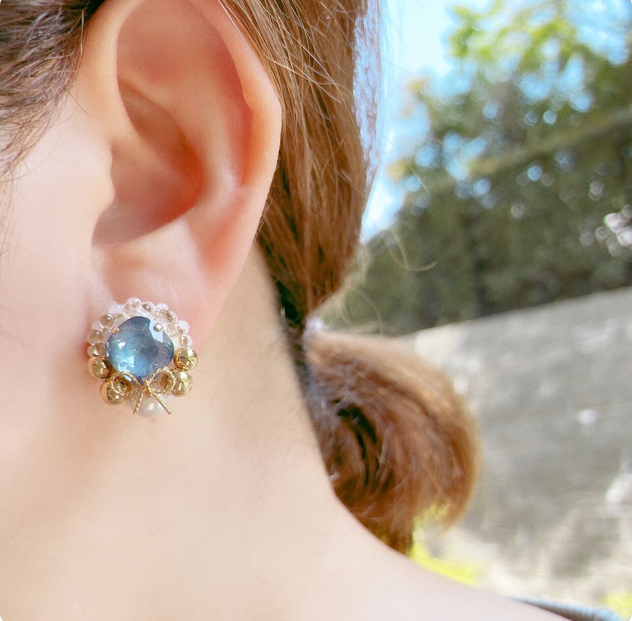 キュッと小さく結ばれたリボンが耳元を華やかにしてくれます。