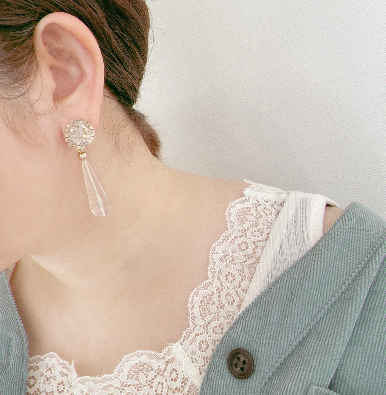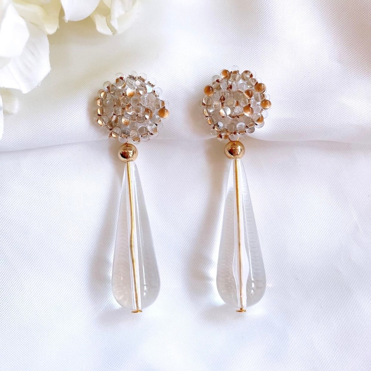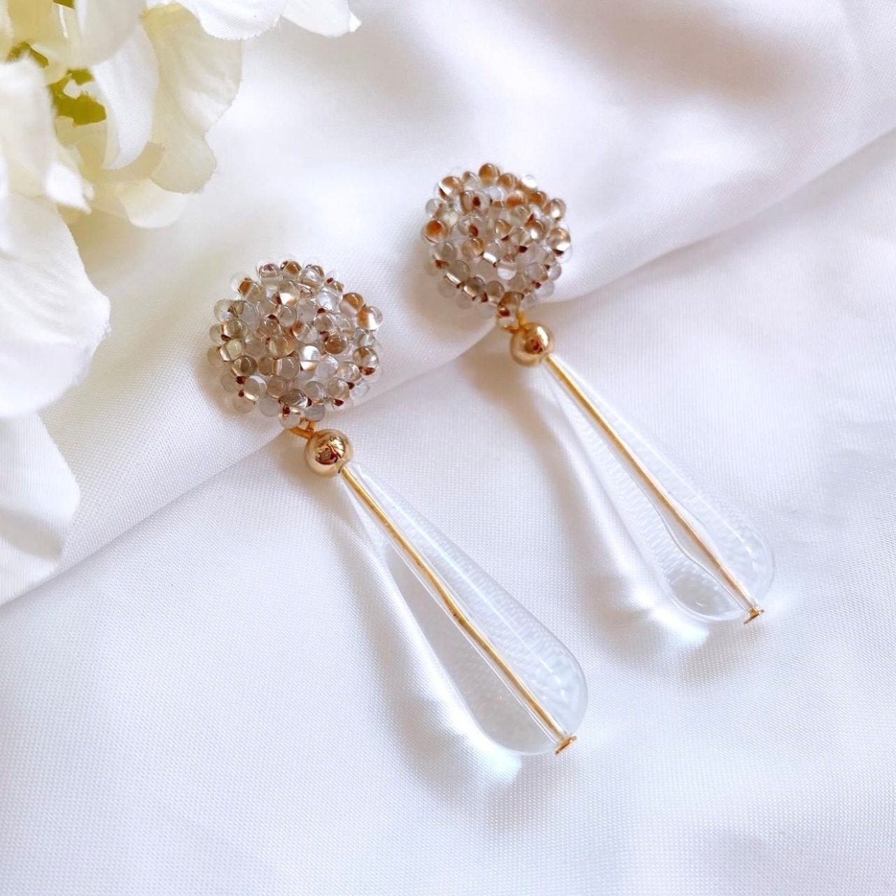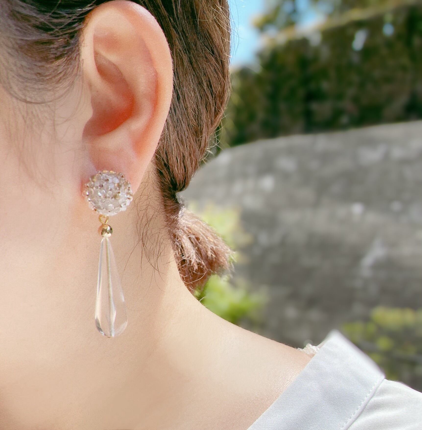 夏の日差しに輝くビーズが涼しげで、お顔周りが明るくなる耳飾りです。