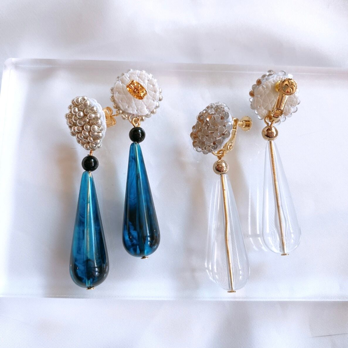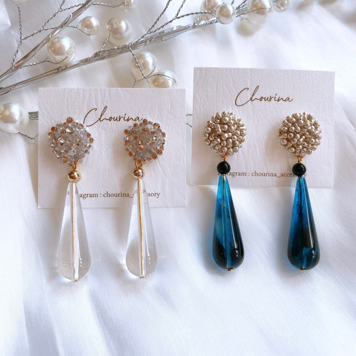 クリアベースのチェコビーズとクリアカラーのドロップビーズを合わせた耳飾りです。