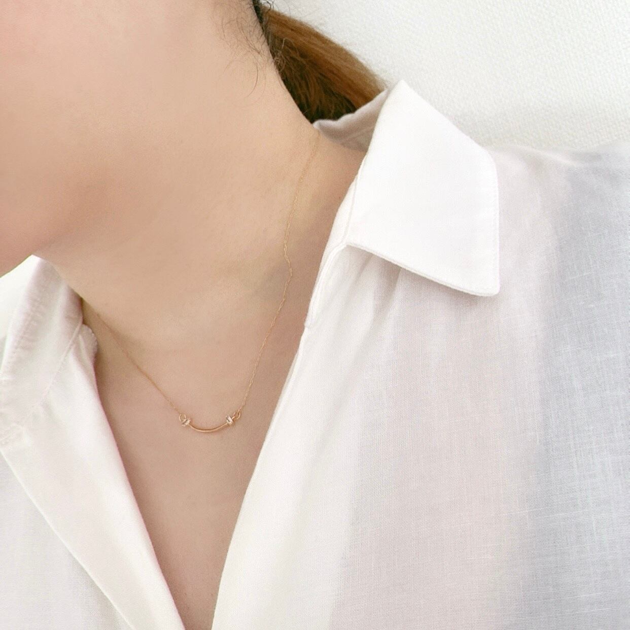 スマイルモチーフを引き立てるため、チェーンは華奢で細身のものをセレクト。