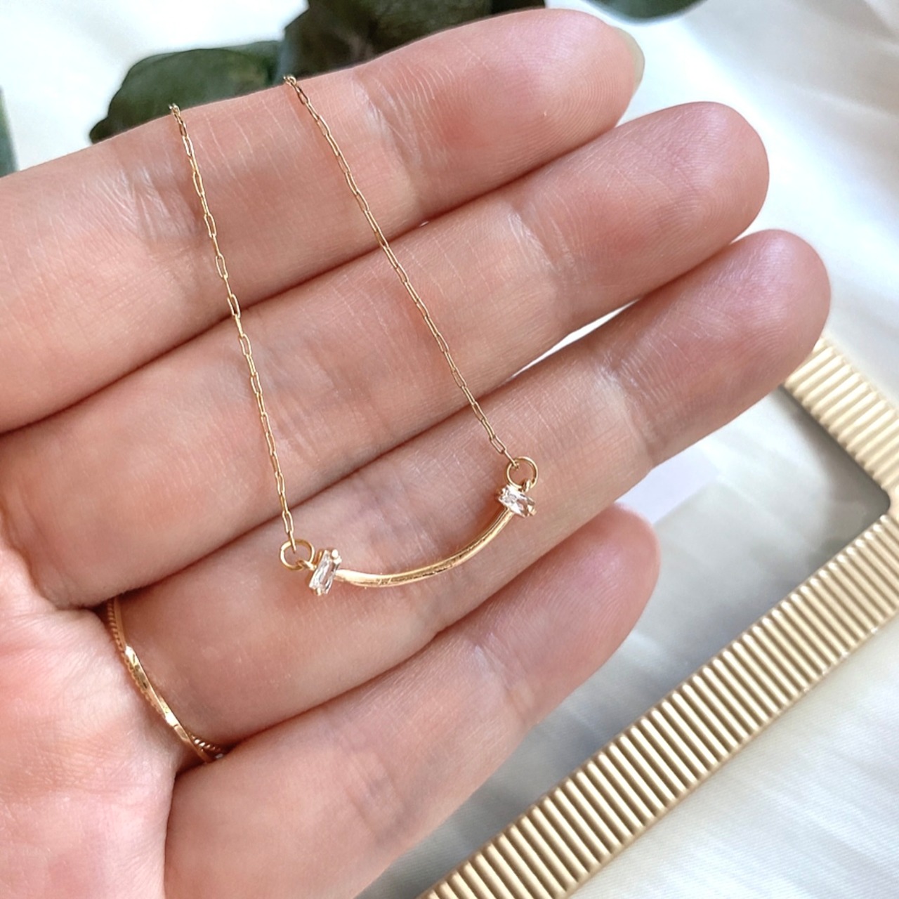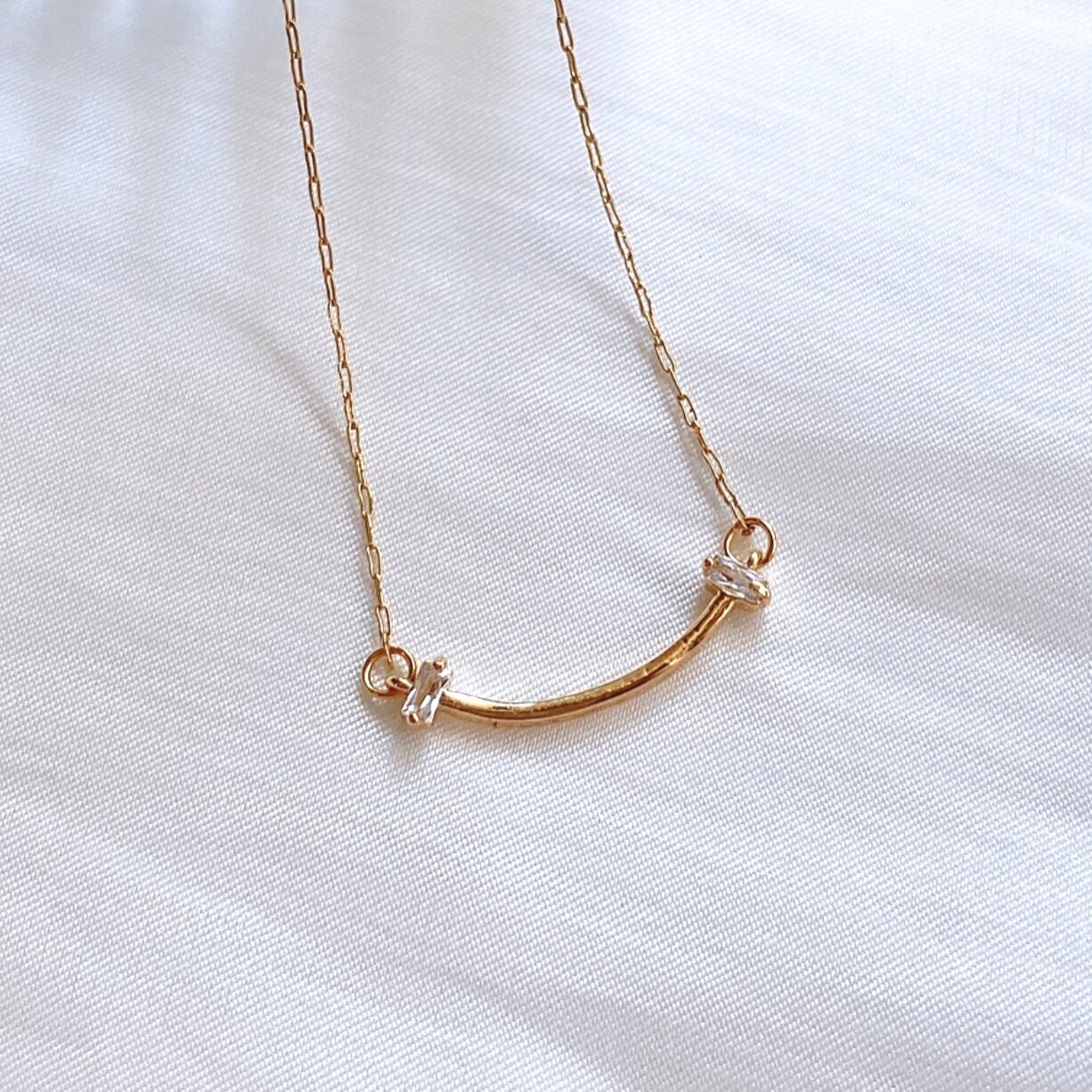 にっこりと笑っているようなスマイルモチーフがキュートで可愛らしい雰囲気のネックレスです。