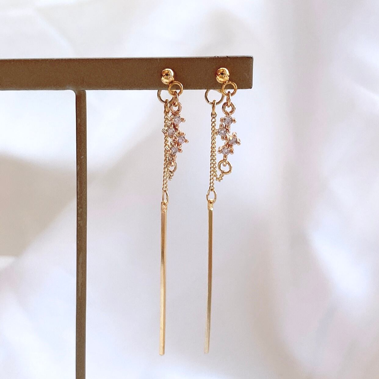 小さなジルコニアが煌めく繊細なイヤリング/ピアスです。
