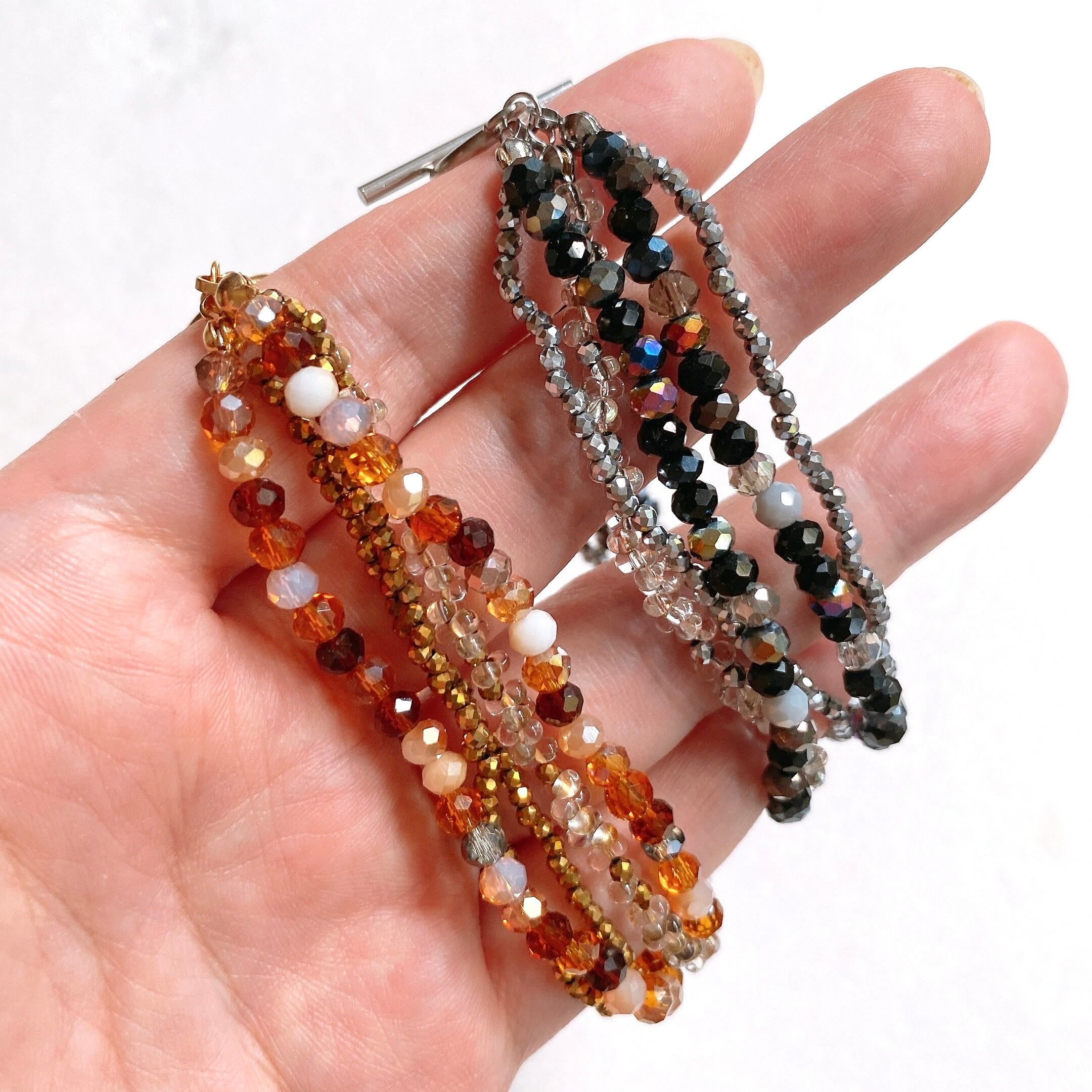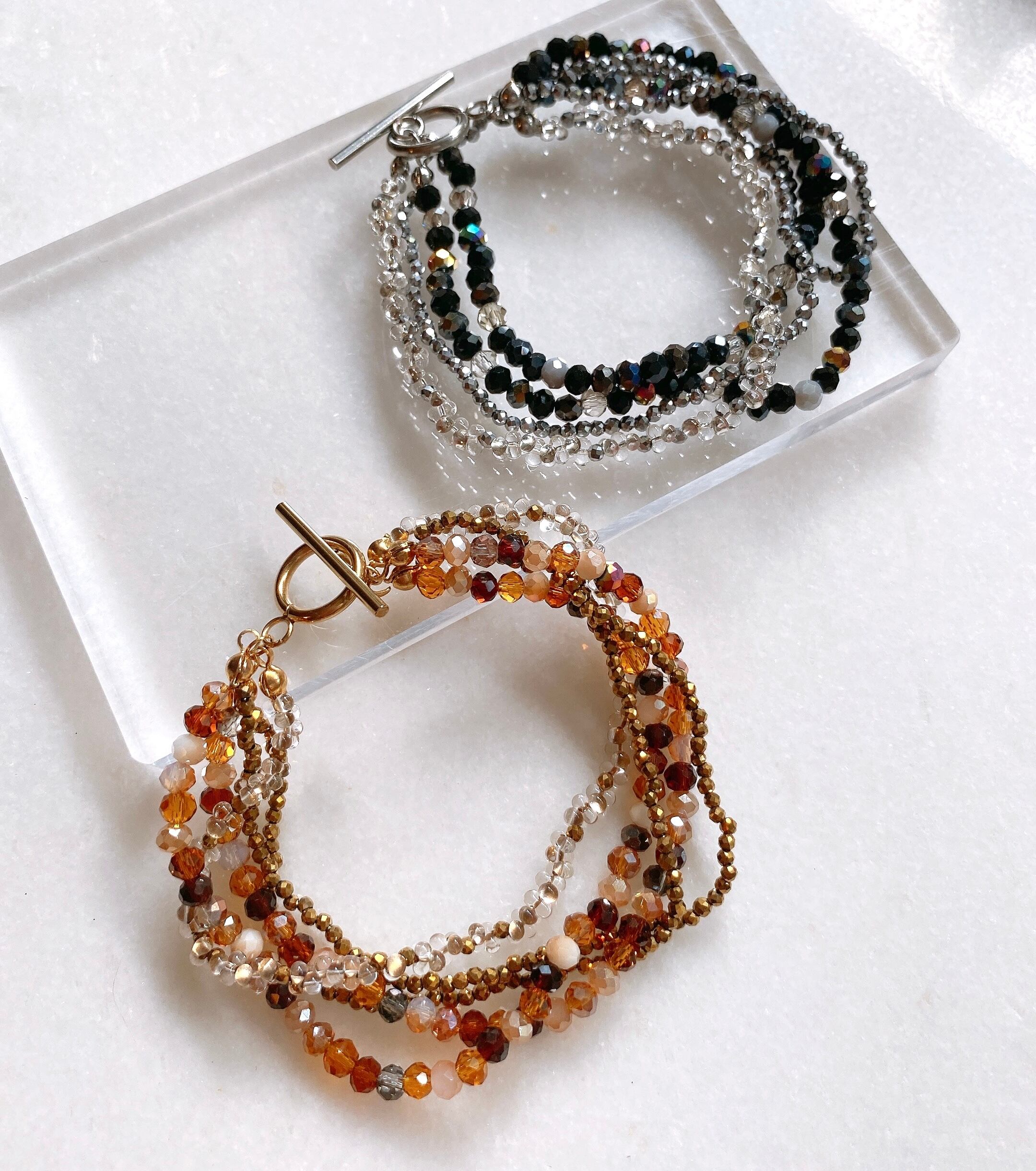 5連のビーズがランダムに動いて、じゃらじゃらとボリューム感のあるブレスレットです。