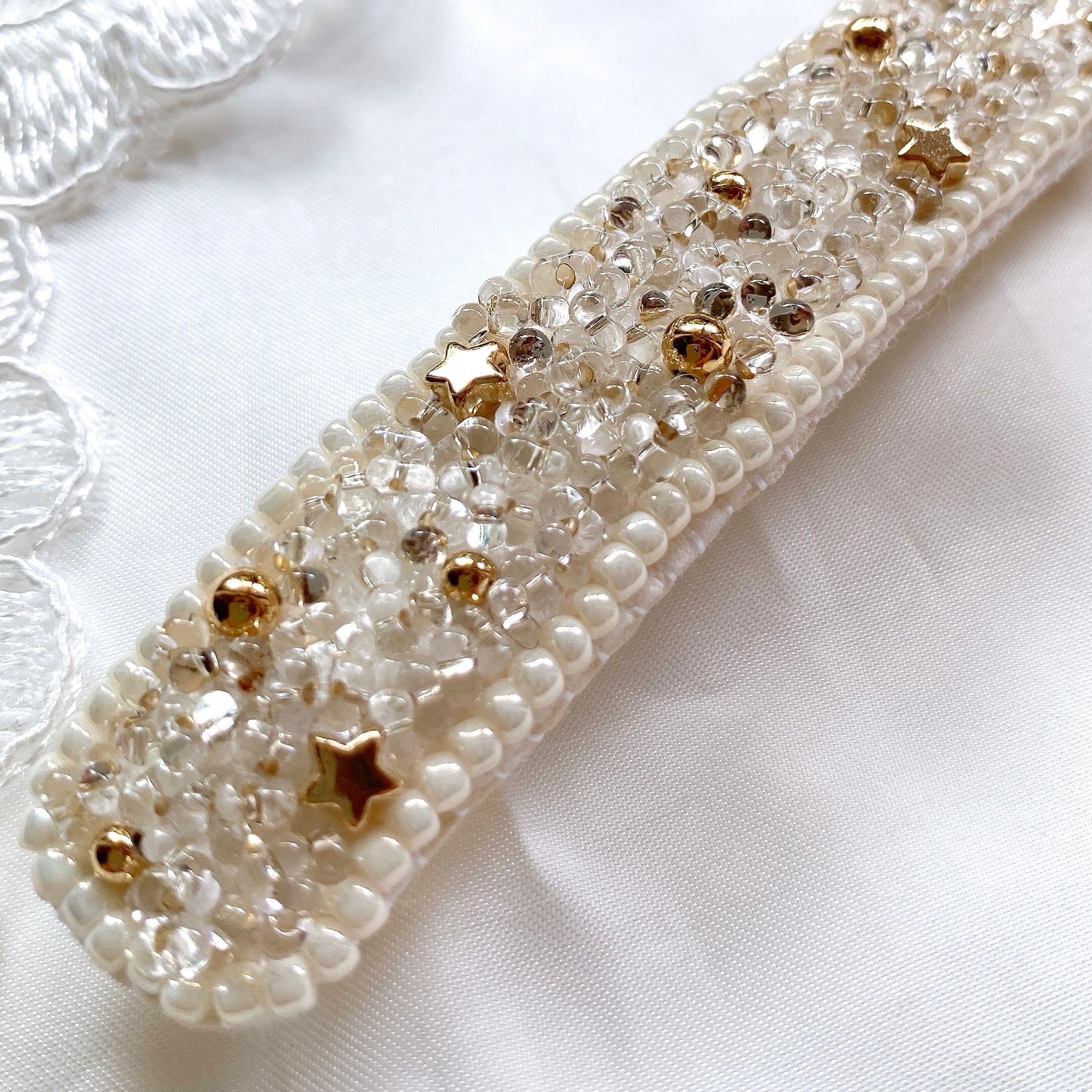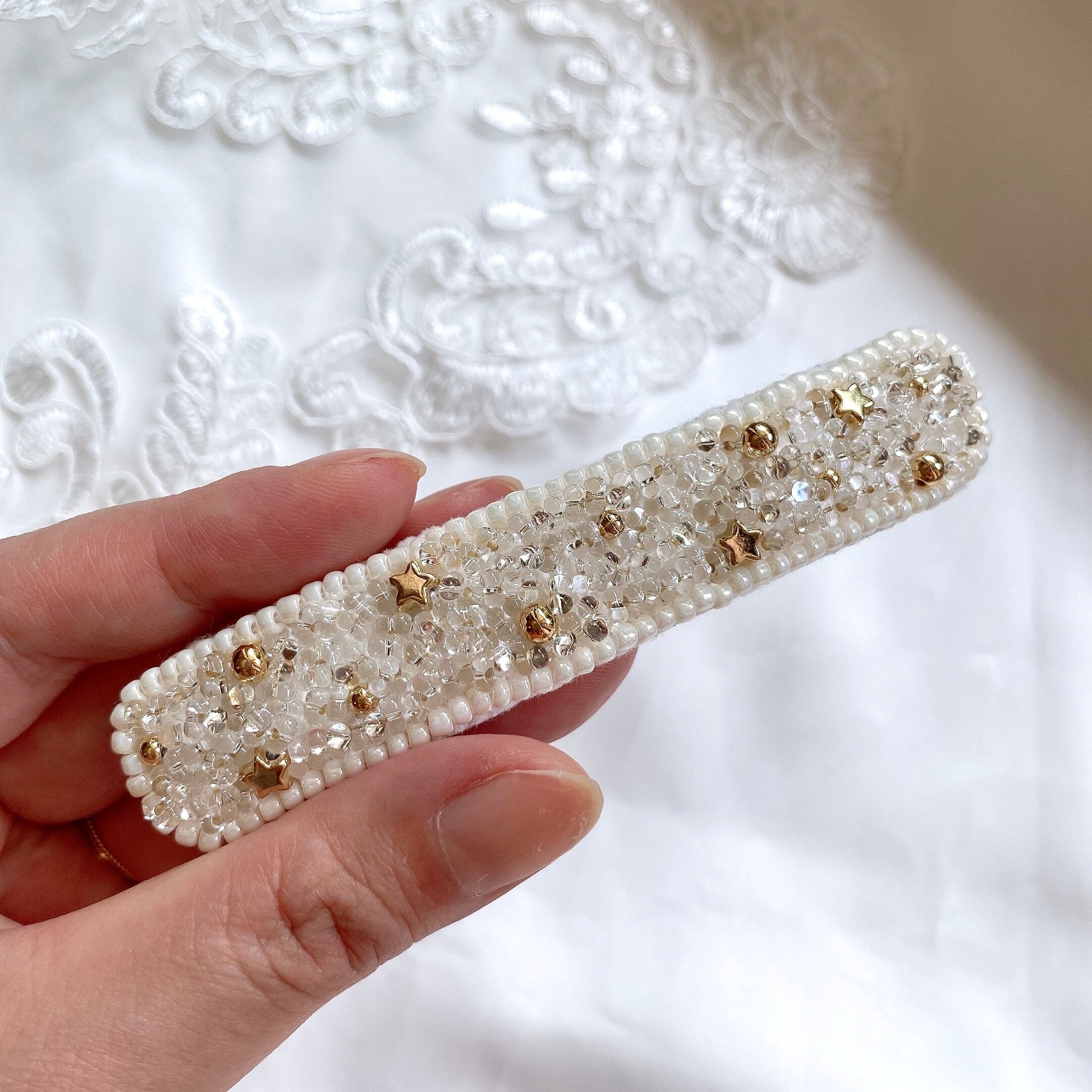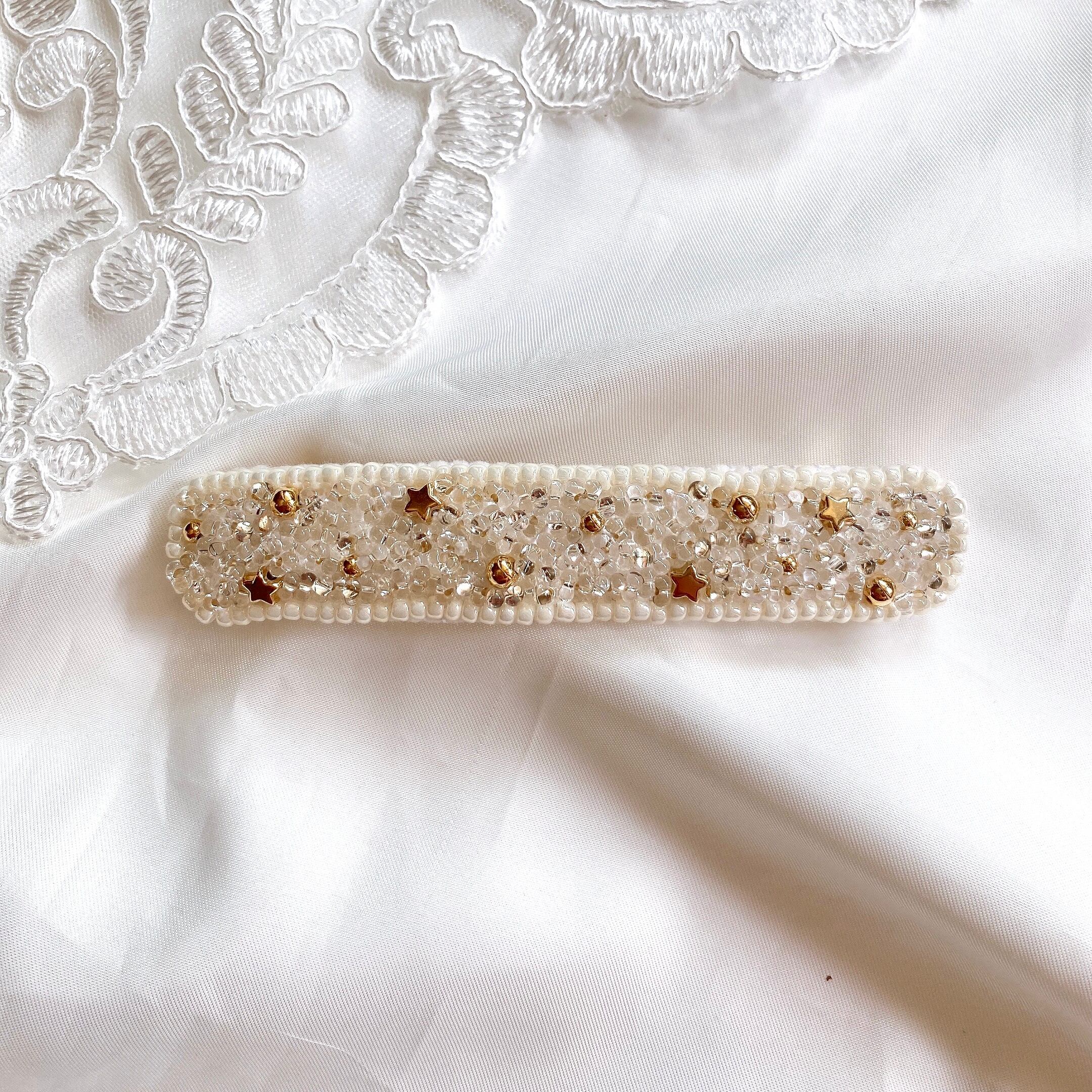 透明感のあるクリアビーズを敷き詰めた華やかなバレッタです。