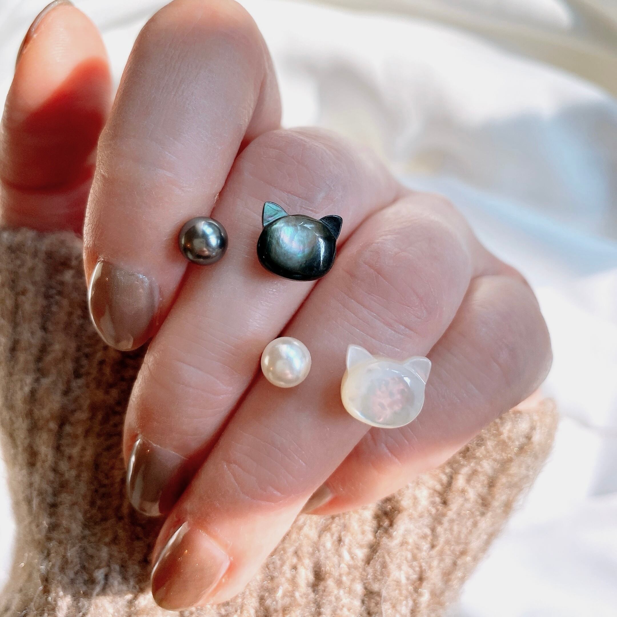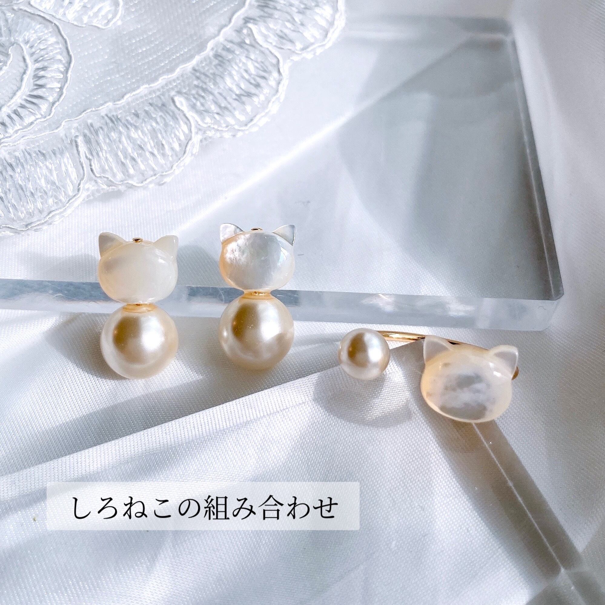子供っぽくならないよう、猫ちゃんの素材は上質なマザーオブパールを使用しました。