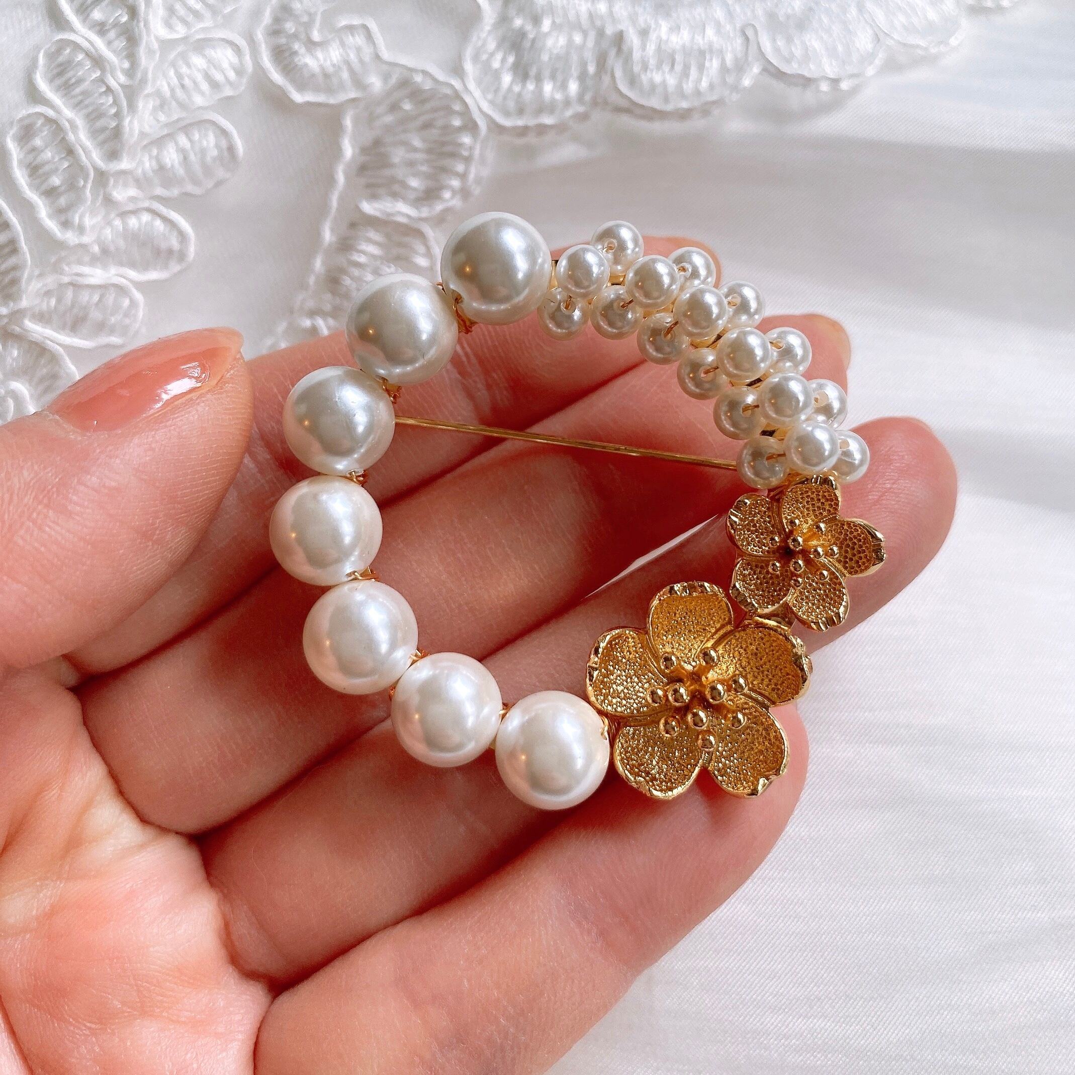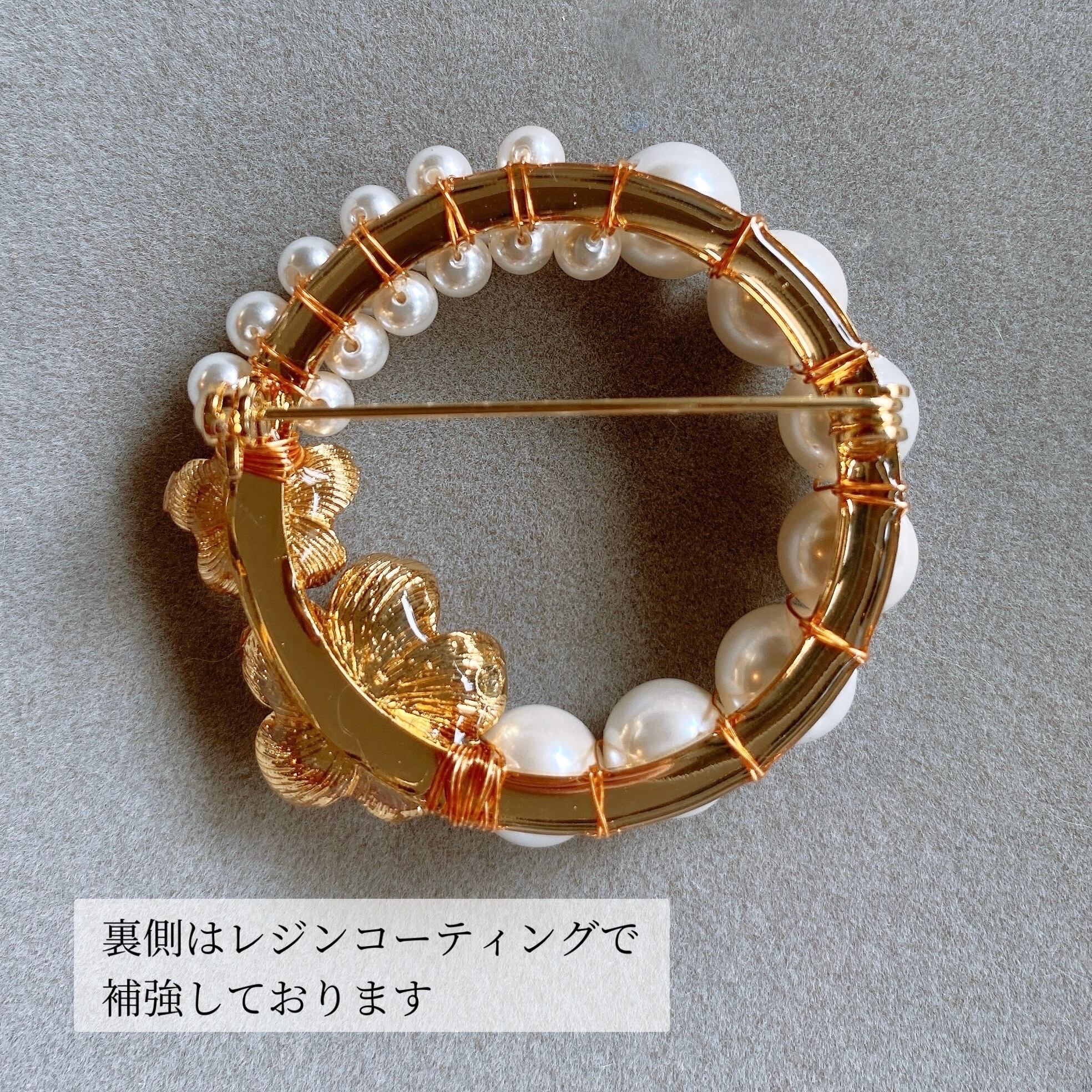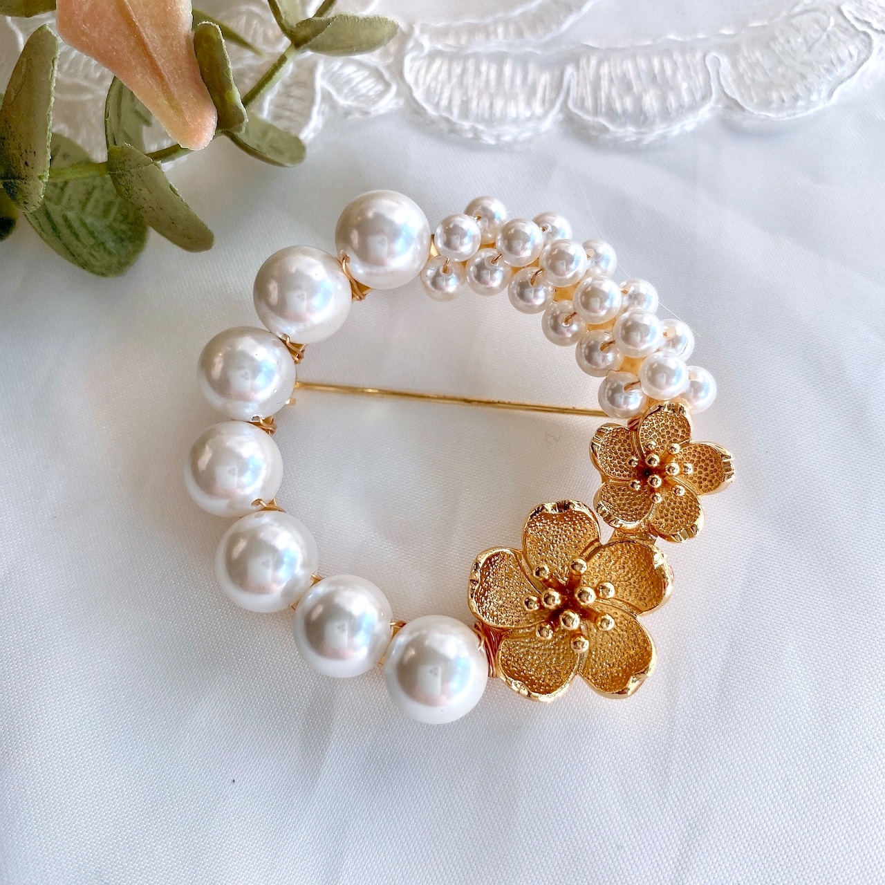 ブローチ//桜/天然石/14kgf/マーブル/淡水パール/パール/ゴールド/プレゼント/誕生日プレゼント/誕生日石/まる/花/チェコビーズ/入学式/卒園式/差し色/春/パール/シック