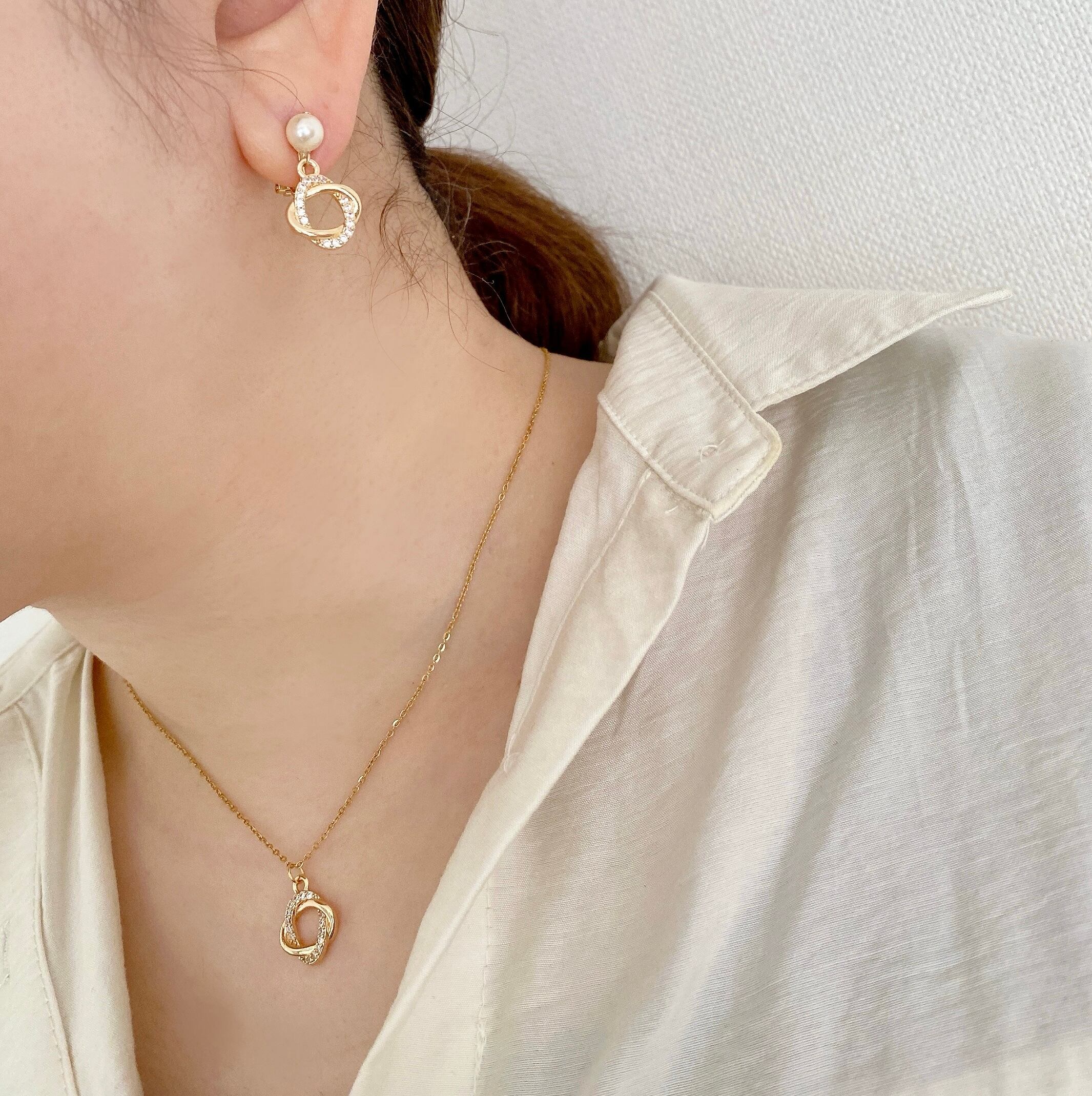 お揃いのネックレスとセットで身に付けていただくと